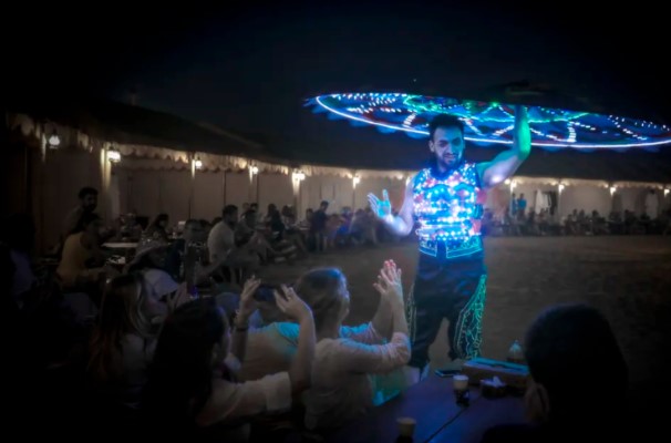 저녁 식사를 즐기면서 볼 수 있는 공연 또한 빠질 수 없는 재미입니다. 벨리댄스, 탄누라 댄스 등 아랍 전통 공연이 이어지며, 마치 사막 한가운데에서 아랍 문화의 정수를 만나는 듯한 기분을 느낄 수 있습니다. 공연이 끝나면 자유롭게 주변을 둘러보며 사진을 찍거나 사막의 고요함을 느낄 수 있습니다.