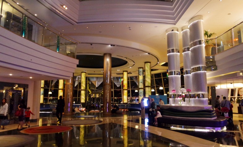 호텔에 들어서는 순간 넓고 화려한 로비가 여행자의 마음을 설레게 했습니다. 고풍스러운 샹들리에와 대리석 바닥, 고급 가구로 꾸며진 로비는 마치 궁전에 온 것처럼 웅장하면서도 세련된 느낌을 주었고, 중앙에 위치한 대형 수족관은 또 다른 볼거리를 선사했습니다.