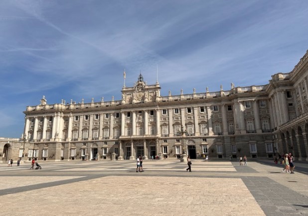 이곳은 예전에는 스페인 왕가가 머물던 곳으로, 현재는 공식 행사나 관광 명소로 사용되고 있어요. 외관부터 장엄하고 웅장한 모습이 인상적이었고, 내부로 들어서면 수많은 방들이 고풍스러운 인테리어와 함께 꾸며져 있어요.