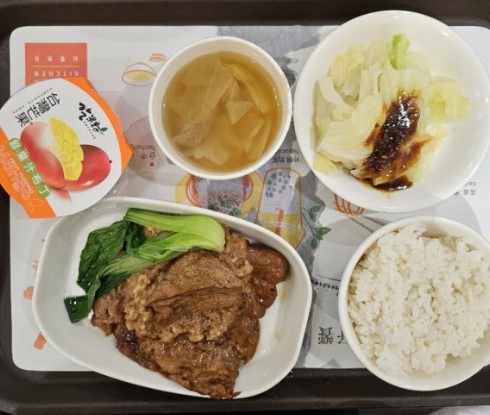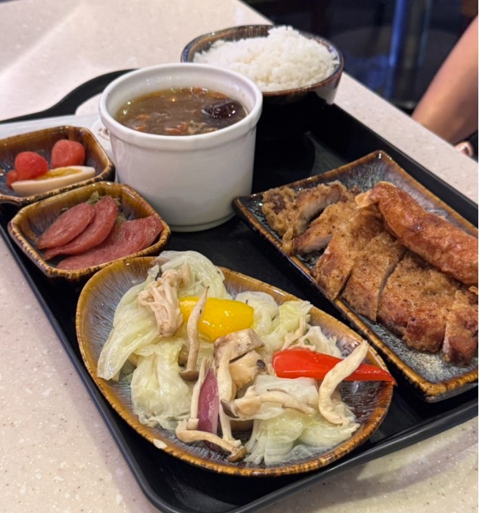 돼지고기 튀김과 소시지가 포함된 이 메뉴는 대만 국기가 그려져 있는 것이 특징입니다. 하지만 돼지고기의 질감이 부드럽지 않고, 대만 특유의 향신료 맛이 강하게 느껴져 개인적으로는 아쉬운 선택이었습니다. 만약 대만 음식을 즐기고 싶으시다면 우육면 같은 다른 메뉴를 시도해 보시는 것도 좋을 것 같습니다.