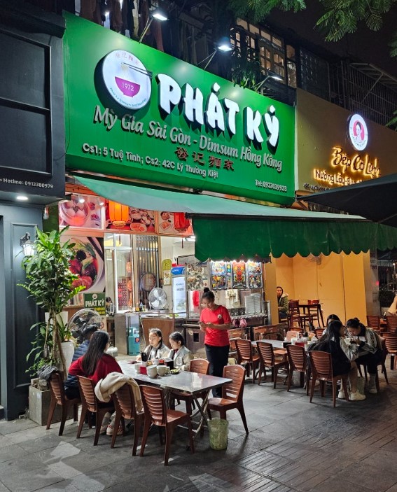 가게 앞에는 "팟기미엔찌아 - 미가(쌀국수집) 사이공 / 딤섬(만두) 홍콩"이라는 간판이 걸려 있습니다. 평범해 보이는 간판이지만, 내부에는 놀라운 맛과 독특한 분위기가 숨겨져 있습니다. 지인의 설명에 따르면, 이곳은 중국계 주인이 직접 운영하는 본점으로, 주인의 특별한 손맛 덕분에 그 맛을 따라올 곳이 없다고 합니다.