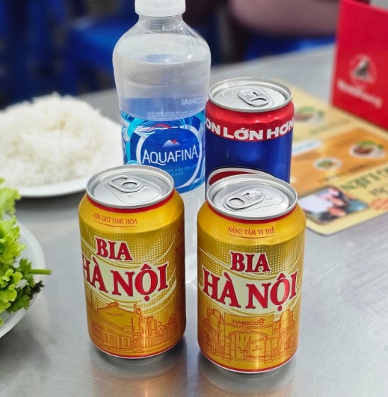 주문 후 가장 먼저 시원한 맥주와 음료가 나왔습니다. 함께 제공된 다진 마늘, 매운 고추, 신선한 야채는 분짜의 풍미를 한층 더 높여줍니다.