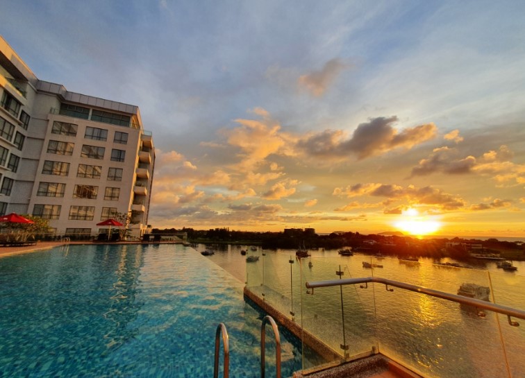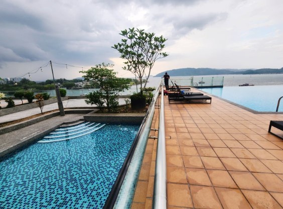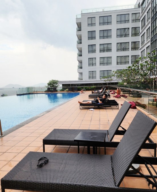 호텔 내 수영장은 오션뷰를 자랑하는 인피니티 풀로, 탁 트인 바다 전망을 바라보며 여유를 만끽할 수 있었습니다. 수영장 옆에는 선베드가 마련되어 있어 흘러가는 구름을 바라보며 힐링의 시간을 가질 수 있었습니다. 특히 일몰 시간대에 방문하면 아름다운 석양과 함께 특별한 경험을 할 수 있었습니다.