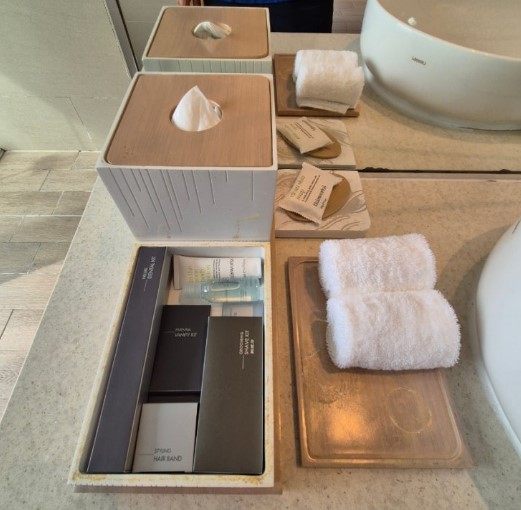 그러나 기본 어메니티(샴푸, 컨디셔너, 보디워시, 칫솔, 빗, 머리끈 등)는 모두 제공되어 편리했습니다.