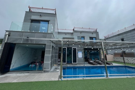파우제 키즈 풀빌라 외관과 입실