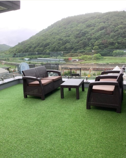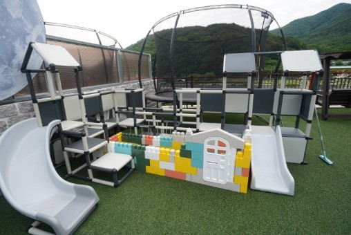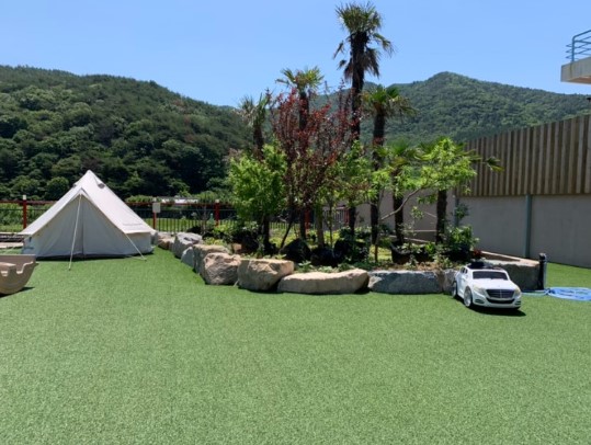 트램폴린과 잔디밭이 마련되어 있어 아이들이 안전하게 뛰어놀 수 있는 공간이 충분했습니다. 특히 트램폴린은 아이들에게 큰 인기를 끌었으며, 부모님들도 근처 바비큐장에서 아이들을 지켜볼 수 있어 안심할 수 있었습니다.