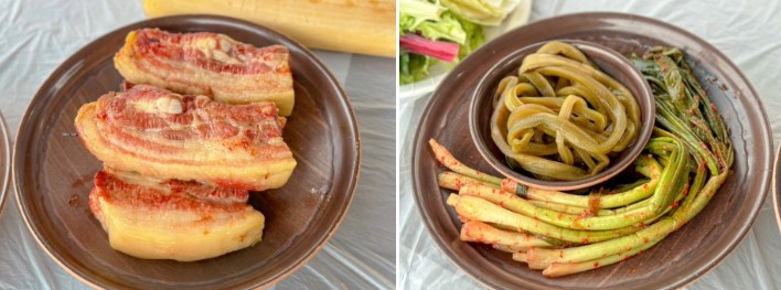 숙소 내 바비큐장에서 신선한 텃밭 야채와 갓김치를 제공받아 더욱 특별한 식사를 즐길 수 있었습니다.