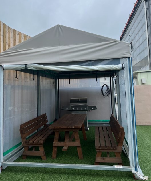 하루 기준 약 5만 원의 추가 비용이 발생하며, 숯과 그릴은 제공됩니다. 바베큐는 항아리 안에서 고기를 구워줍니다.