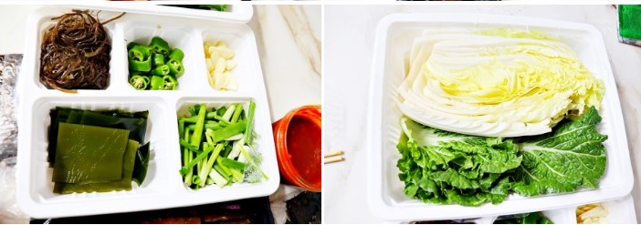 초장과 김은 넉넉하게 들어 있었고, 야채 세트도 아주 신선했어요. 특히 단배추는 반포기 가까운 양이 들어 있어서 추가로 준비할 필요가 없었습니다. 다시마와 쪽파까지 포함되어 있어서 야채 준비가 번거롭지 않았어요.