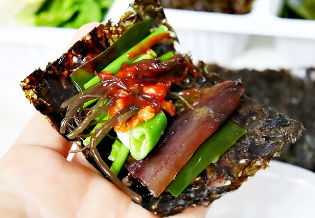 김 역시 초장의 새콤달콤한 맛을 부드럽게 잡아주며 과메기와 완벽한 조화를 이뤘습니다.