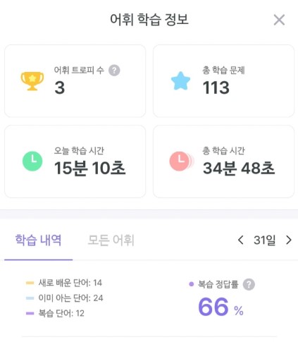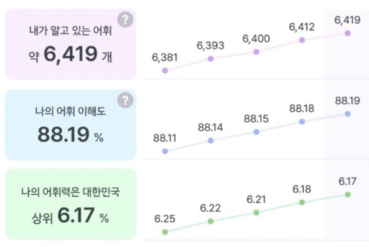 말해보카의 어휘 학습은 체계적입니다. 제가 직접 측정한 결과를 보면
