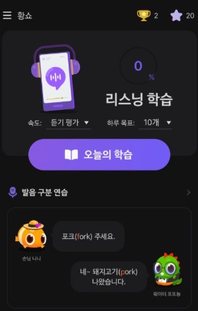 발음 진단 기능도 있어 나의 발음 정확도를 확인하고 부족한 부분을 개선할 수 있습니다.