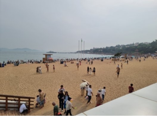칭다오의 대표 해변인 제1해수욕장은 현지인과 관광객 모두에게 사랑받는 명소입니다.
