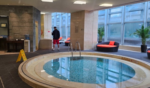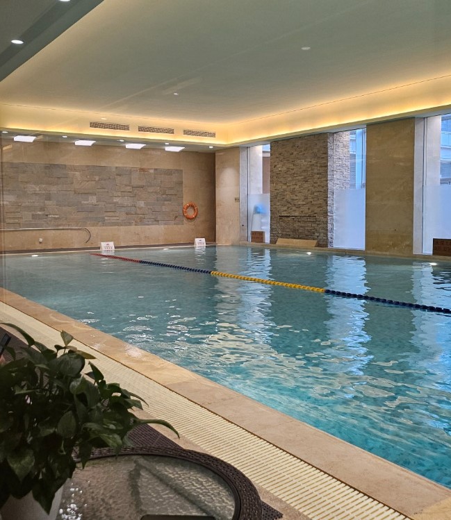 수영장은 깔끔하고 정돈된 분위기였으며, 수영모와 수영복 착용이 필수라 위생 관리도 철저했습니다. 어린이를 위한 낮은 풀장도 마련되어 있어 가족 단위 여행객들에게도 좋습니다.