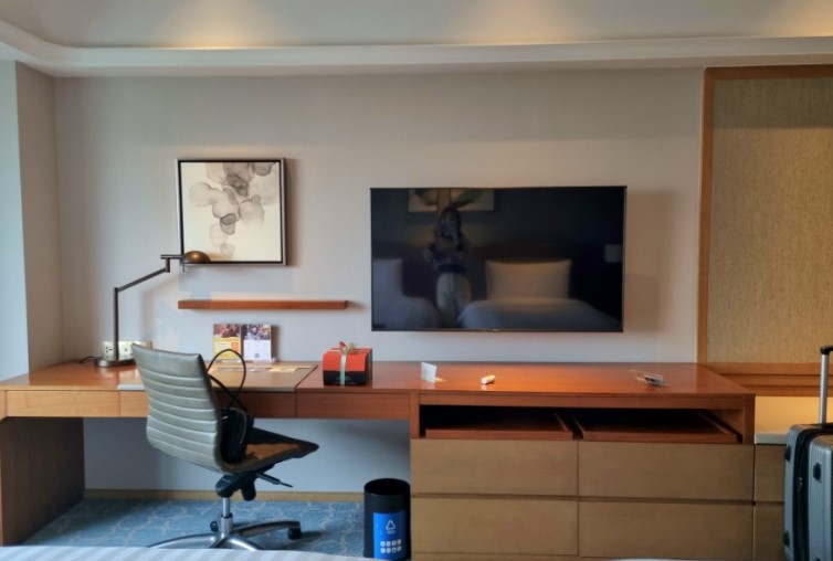 객실은 5성급 호텔답게 매우 넓었습니다. 기본적인 디럭스룸임에도 불구하고 답답함 없이 여유롭게 짐을 풀고 쉴 수 있는 공간이 인상적이었습니다. 화이트와 우드톤이 조화를 이루는 인테리어는 군더더기 없이 세련되었으며, 곳곳에 섬세한 디테일이 돋보였습니다.