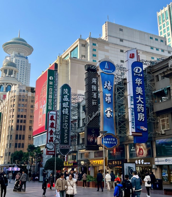 아침 일찍 난징동루에 도착했습니다. 난징동루는 상하이의 대표적인 번화가로, 거리 곳곳에서 도시의 생동감을 느낄 수 있는 장소입니다.