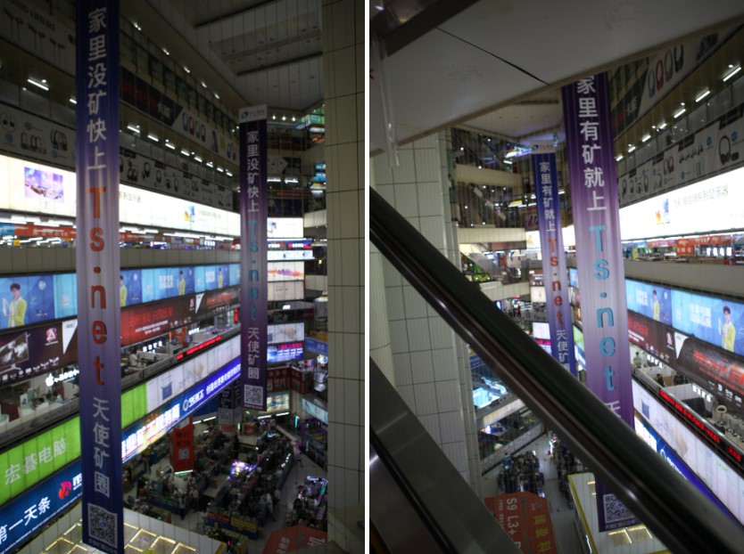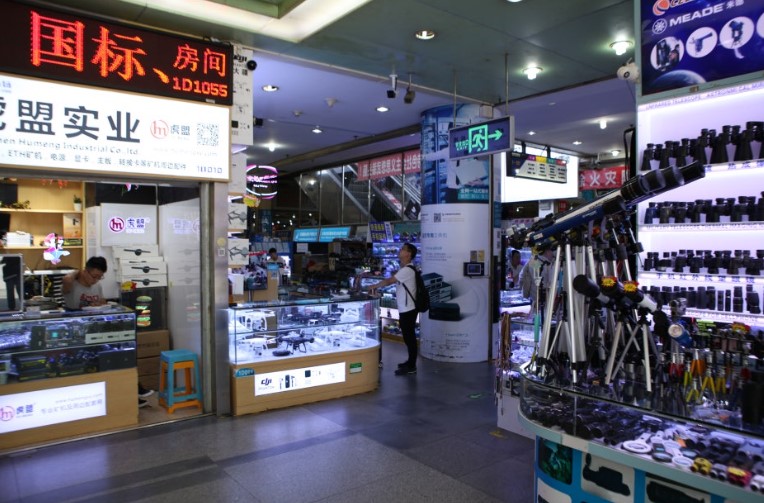 상가에 들어서자마자 끝없이 이어지는 매장과 다양한 제품들이 한눈에 들어왔습니다. 스마트폰부터 컴퓨터 부품, 드론까지 없는 것이 없을 정도였습니다.