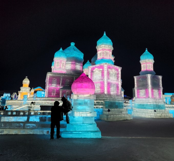 거대한 얼음 건축물들이 놀이공원 크기의 공간에 펼쳐져 있어 방문객들에게 놀라움을 안겨줍니다.