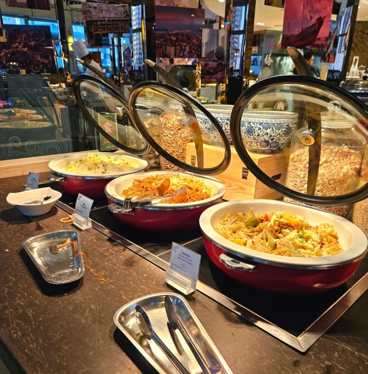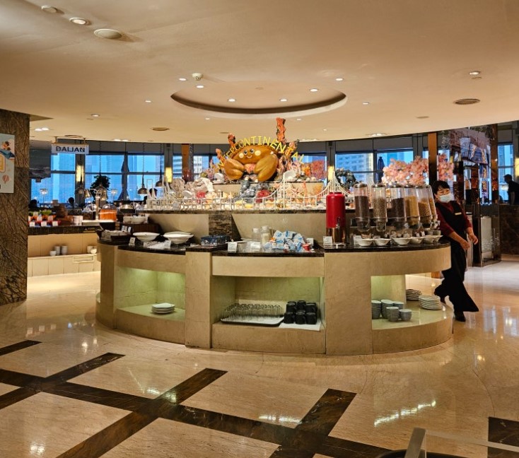 다롄 인터콘티넨탈 호텔의 조식 뷔페는 다양한 현지 음식과 서양식 요리를 동시에 즐길 수 있어, 여러 취향을 만족시킬 수 있었습니다.