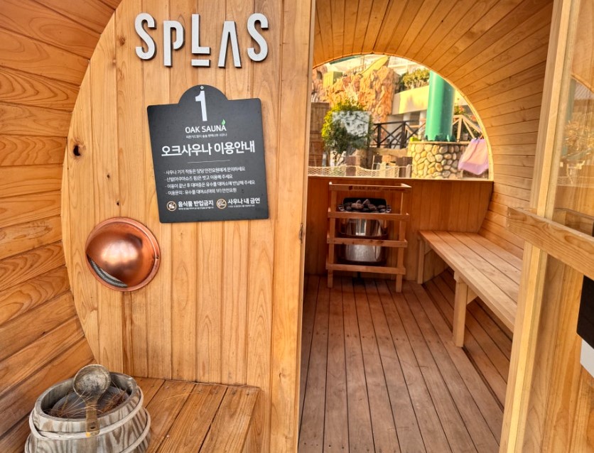 물놀이 후, 사우나도 빼놓을 수 없죠. 오크통 편백룸은 여름에는 쉼터로, 겨울에는 사우나로 활용되는데, 이곳에서 몸을 푼 뒤 더 개운해졌어요. 편백의 향기가 정말 좋았고, 겨울철에 사우나로 피로를 풀기에 딱 좋은 곳이었습니다.