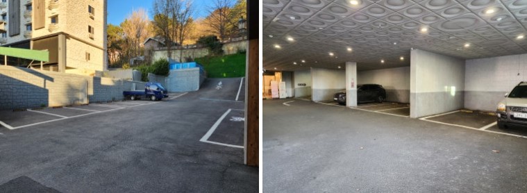 저희는 4시쯤 도착했는데, 평일이라 그런지 주차장도 여유가 있었습니다. 1층과 2층, 그리고 외부 주차 공간까지 마련되어 있어 주차 걱정 없이 편하게 이용할 수 있었습니다.