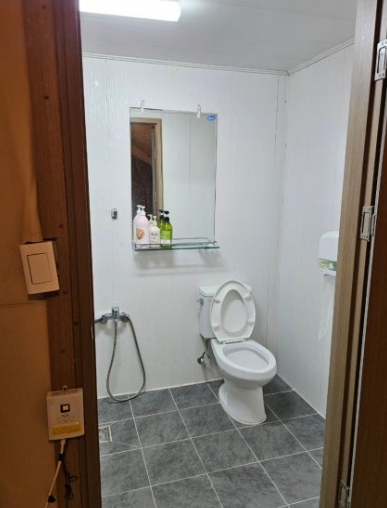 화장실에서는 온수가 잘 나와서 샤워하는 데 불편함이 없었어요.