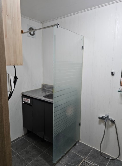세면대 공간에서는 간단한 설거지도 가능해 실용적이었습니다.