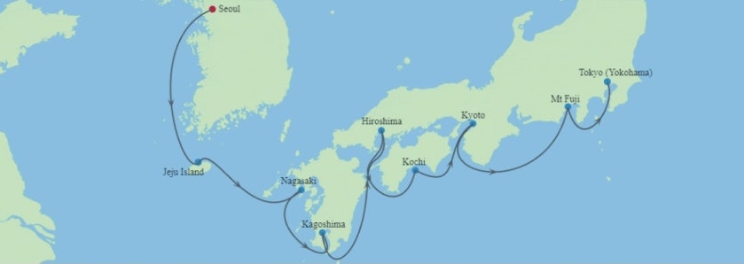 여정: 인천 → 제주 → 나가사키 → 가고시마 → 히로시마 → 고치 → 오사카 → 시미즈 → 요코하마(도쿄)