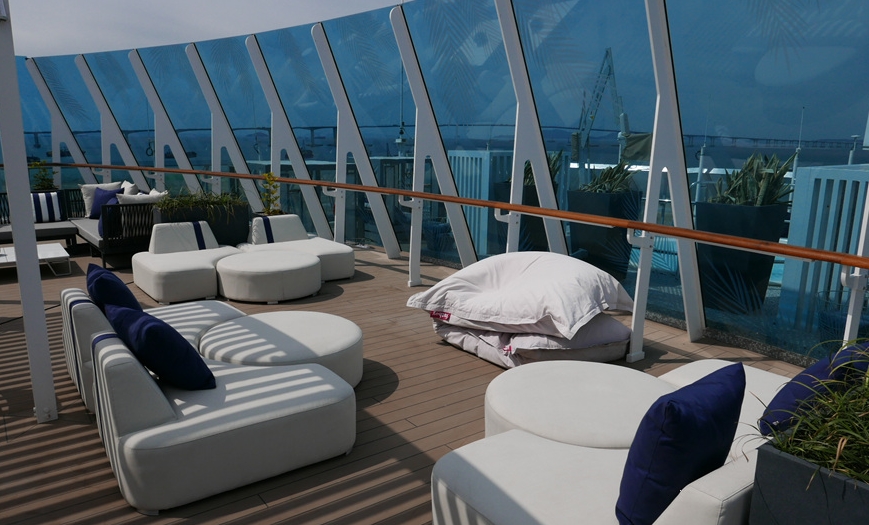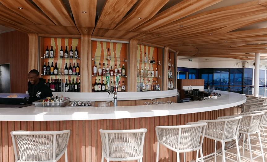 짐을 풀고 난 후, 선상에서 가장 인기 있는 선셋 바에 들러 출항을 기념하며 칵테일 한 잔을 즐겼습니다.