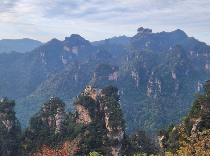 정상에서는 서해 전망대에 올라 장가계 전체를 조망할 수 있었는데, 하늘과 맞닿아 있는 듯한 풍경이 정말 인상적이었습니다.