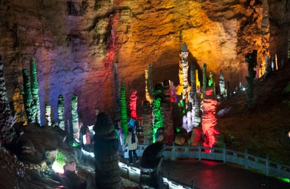 황룡동굴은 중국에서 가장 큰 석회암 동굴 중 하나로, 내부가 매우 넓고 아름다운 종유석과 석순들이 가득했습니다.
