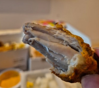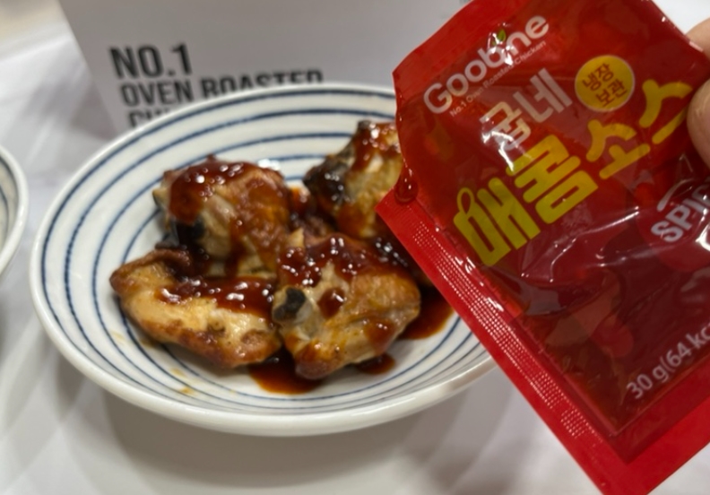 일반 오븐구이 치킨과 다르게 겉면이 더욱 크리스피하게 마무리되어 있어 튀김 치킨을 좋아하는 분들도 만족할 만한 식감을 가지고 있어요.