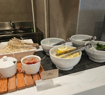 즉석 조리 코너도 좋았어요. 계란 코너에서 후라이와 오믈렛을 직접 주문할 수 있었고, 쌀국수 코너에서는 취향대로 숙주나 소스를 넣어 즐길 수 있어 더 재미있었습니다.