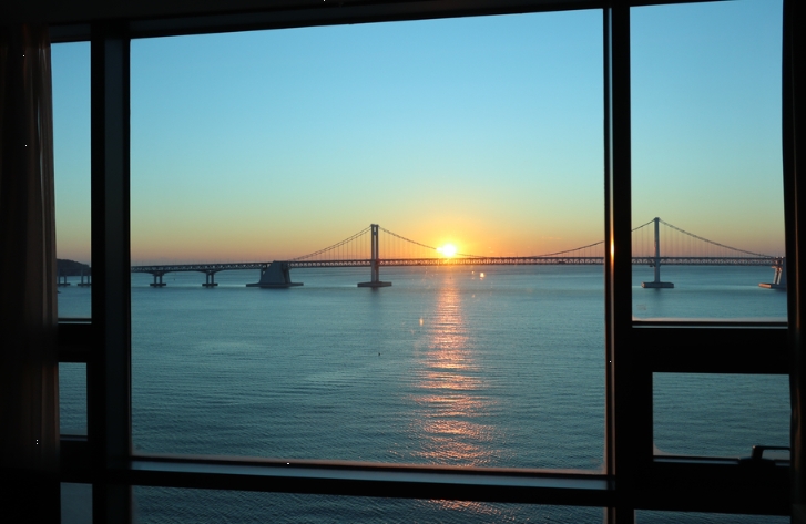 객실에서 바라보는 광안대교와 해변의 경치가 환상적