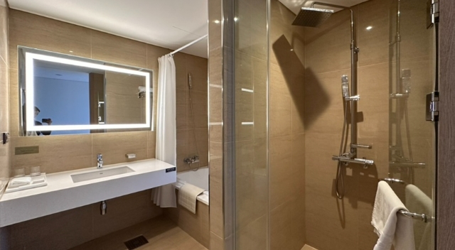 욕실은 넓고 깨끗하게 관리되어 있었으며, 샤워실과 욕조가 분리된 구조였습니다.