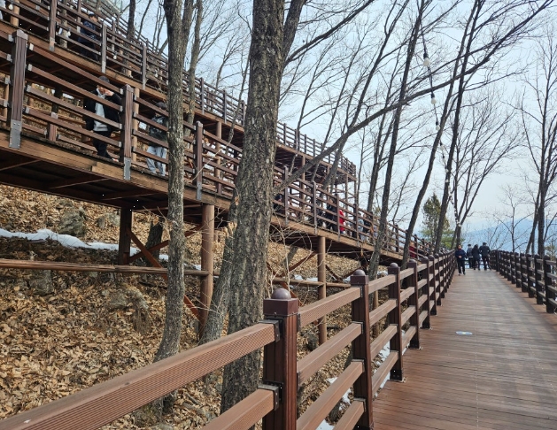 우리는 올라갈 때는 무장애길을, 내려올 때는 계단길을 선택했습니다. 자연 속을 걷는 기분이 상쾌했고, 곳곳에 포토존이 있어 멋진 사진을 남길 수도 있었습니다.