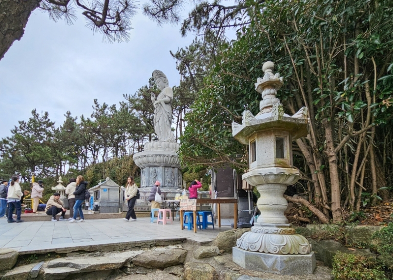 대웅보전 옆쪽 계단을 따라 올라가면 거대한 해수관음대불상이 자리하고 있습니다.