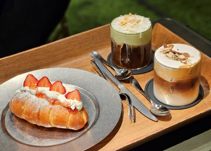 우리는 '말차코코넛 콜드브루'와 '아몬드크림 라떼'를 맛보았습니다.