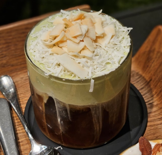 말차코코넛 콜드브루는 말차의 쌉싸름한 풍미와 코코넛의 고소한 향이 조화를 이루며, 깔끔하면서도 이국적인 맛이 매력적인 음료였습니다. 콜드브루 베이스 덕분에 더욱 깔끔한 끝맛이 느껴졌고, 한 모금 마실 때마다 코코넛의 은은한 향이 퍼져서 특별한 조합이라는 생각이 들었어요.