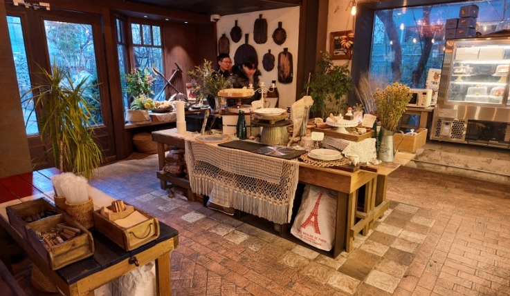 매장 곳곳에 감성적인 빈티지 소품과 케이크 쇼케이스가 배치되어 있어서 보는 재미도 쏠쏠! 베이글뿐만 아니라 다양한 디저트도 함께 즐길 수 있어요.