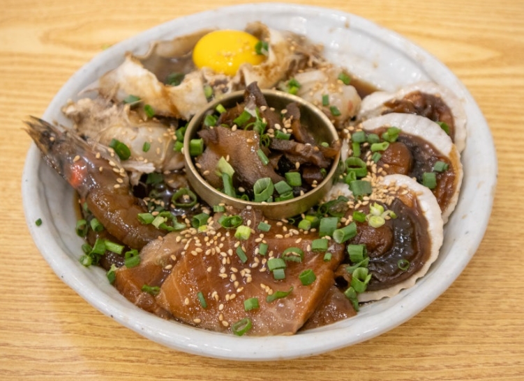 테이블에는 호우섬 특제 간장이 준비되어 있었고, 기호에 따라 뿌려 먹을 수 있었습니다. 처음에는 간장을 조금씩 넣어 먹다가 결국 전체적으로 뿌려서 비벼 먹었는데, 감칠맛이 한층 살아나 더욱 맛있었습니다.