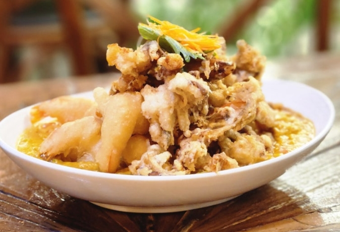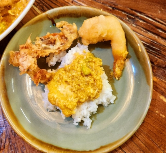 특히 크랩은 소프트쉘 크랩이라, 껍질이 부드러워 바로 씹어 먹을 수 있어 너무나 맛있답니다. 커리 소스와 함께 밥을 비벼 먹으면, 그 맛이 태국에서 먹었던 푸팟퐁커리보다 훨씬 맛있다고 자신 있게 말씀드릴 수 있어요