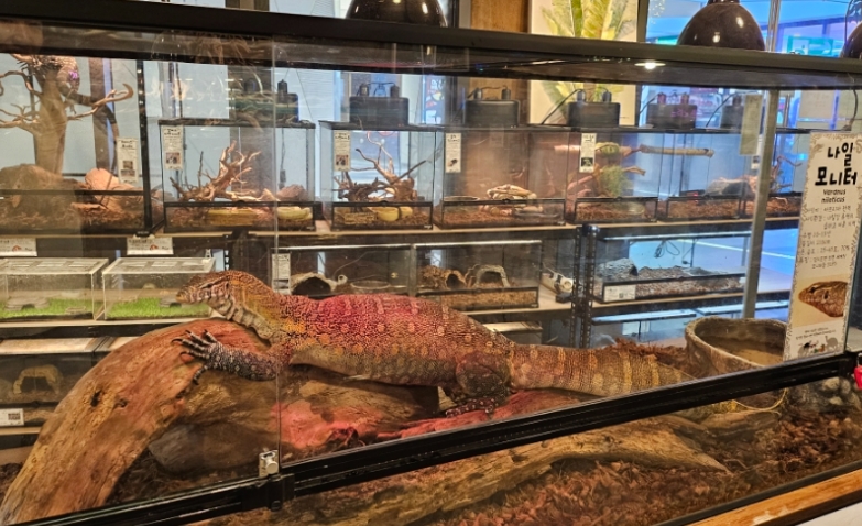 이곳에는 귀여운 거북이, 도마뱀, 카멜레온, 고슴도치 등 여러 동물이 있어요.