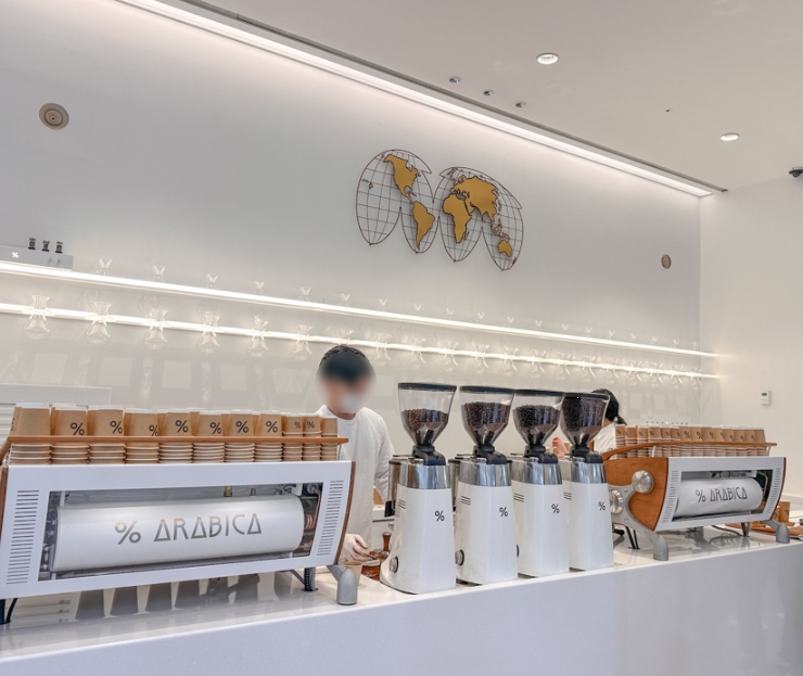 아라비카커피는 세계적으로 유명한 브랜드인 만큼, 매장에 들어서자마자 심플하면서도 세련된 미니멀 인테리어가 눈에 띄었어요.