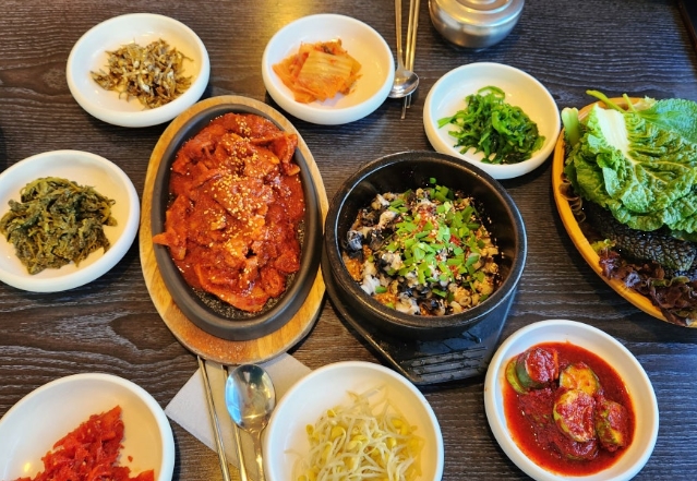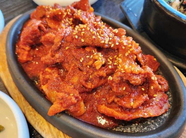 제육볶음은 매콤달콤한 양념이 정말 잘 배어들어 있어서 밥에 비벼 먹거나, 큰 쌈에 싸서 먹으면 그 맛이 더욱 강렬해졌어요.