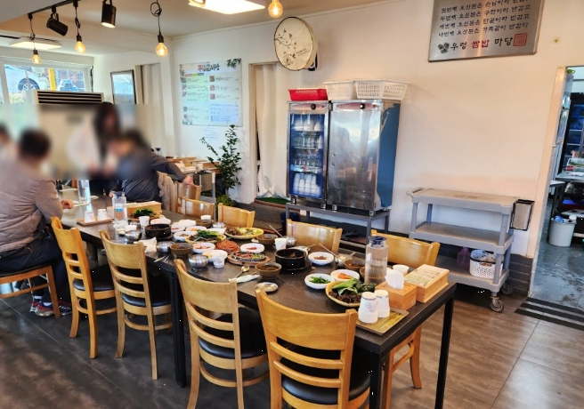 식당 내부는 아주 깔끔한 밥집 스타일로, 특별한 꾸밈 없이 간결하고 정갈한 느낌이었어요.