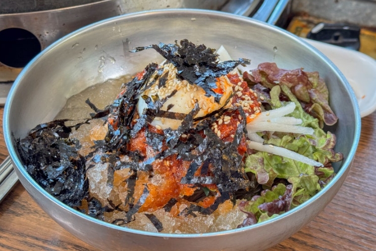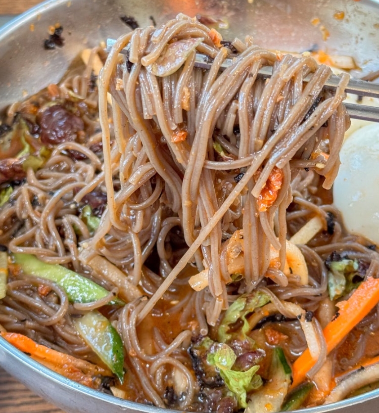 동치미 국물로 만든 비빔 막국수는 물막국수와 비빔막국수의 중간 맛이었는데, 그 조화가 정말 훌륭했습니다.