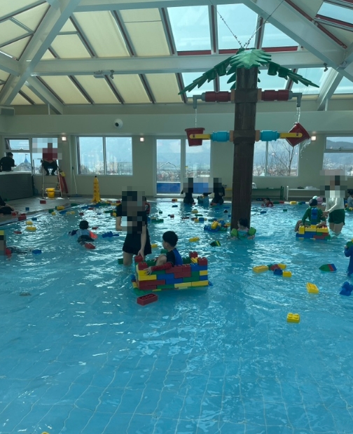 레고랜드 호텔의 가장 큰 매력 중 하나는 워터플레이입니다. 2층에 위치한 실내 수영장은 어린이들이 물속에서 안전하게 놀 수 있는 공간으로, 아이들이 물에 빠져 놀면서 스트레스를 풀 수 있는 최고의 공간이었습니다.