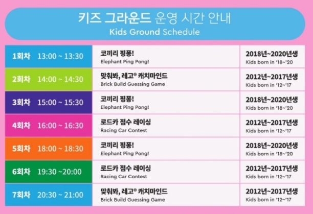 이곳은 투숙객 전용으로 제공되며, 프로그램은 매일 오전 9시부터 예약을 받아 진행됩니다. 키즈그라운드에서는 아이들이 다양한 창의력 발휘와 신체 활동을 할 수 있는 프로그램들이 준비되어 있습니다.