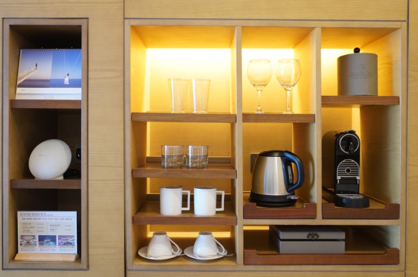 체크인 카운터 직원분들도 굉장히 친절했어요. 예약한 내역을 확인한 후, 숙박 혜택을 상세하게 설명해 주셨고, 360도 회전 스카이라운지 카페의 아메리카노 2잔 쿠폰, 호텔 픽업 & 샌딩 서비스, 조식 뷔페 할인권, 그리고 호텔 직영 횟집 ‘어국’ 1만 원 상품권 등 다양한 혜택을 받을 수 있었어요.
